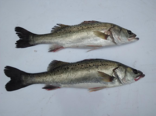 1. 外在品质特征特性:钦州鲈鱼鱼体硕长,体色鲜亮,口较大,上端位,吻尖、牙细小,前鳃盖骨后缘有细锯齿,侧线与体背缘平行、体背披细小栉鳞,皮层厚实,鳞片不易脱落。体背侧呈青灰色,腹侧为灰白色,体侧及背鳍鳍棘部分布着黑色斑点,随年龄增长,斑点逐渐偏淡。钦州鲈鱼肉质细嫩鲜美,口感醇厚无腻、肌肉富有弹性。
