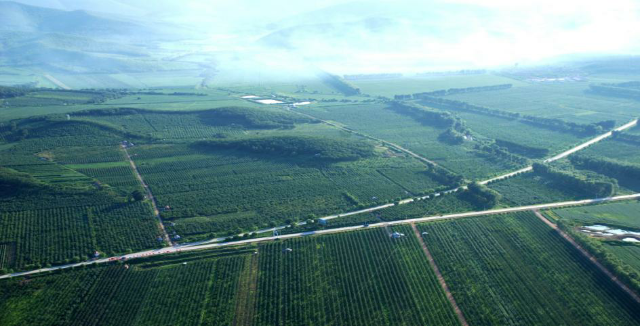 1. 土壤地貌情况:寒疆果都万亩果树基地,像一块绿宝石镶嵌在三江平原腹地五九七农场场部地区。由于受远古时期地壳运动影响,如今的五九七农场从地形上看,恰好位于山间盆地性质的陷落区,四面环山,气候为温带大陆性气候,山区海拔高度为200—450m。土质为棕壤土,这种土质的特点是:水分干燥,黑土层大约在18厘米,PH值6.8,有机质含量4.14%,适合果树的生长。境内有黑瞎沟水库及西南部为完达山余脉,中部有大孤山、头道山、二道山、三道山等5座山岗环绕,南高北低,局部微地形复杂。这里水质清洁,适宜生产优质的龙垦杏产品。随着农场特色果林业的迅猛发展,五九七农场又被各级领导以及广大游客冠以“中国绿色寒疆果都”的美誉。