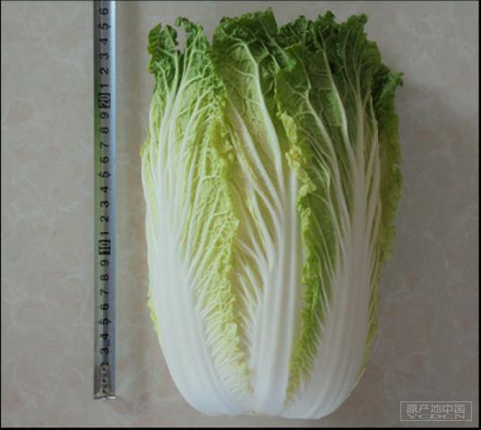 1. 外在感官特征:化德大白菜叶球弹头形、半叠抱直筒型,横径18-25cm,纵径25-30cm,单株重4kg左右,外叶浓绿、内叶嫩黄、叶帮质嫩,叶柄汁多甜脆,气味清新,糖分含量高、纤维较少、口感好,品质佳。