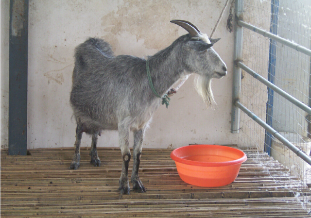 2. 品种选择与特定要求:以单县青山羊本品种繁育为主,坚持选中选配、自繁自养,确保本品种特有遗传性能的稳定。单县青山羊公母羊均有角、有髯,额部有卷毛,在选择上严格按照“四青一黑”(即背部、唇、角、蹄为青色,两前膝为黑色)特征和性成熟早、繁殖率高、耐粗饲、适应性强、皮毛质量好等条件选择个体。