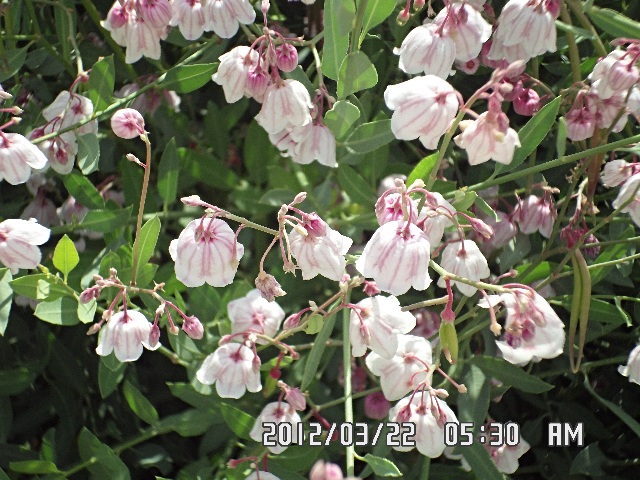 1. 外在感官特征:株高通常约1至1.5m,最高2.5m;叶互生,为椭圆形或披针形,呈深绿色,背面灰绿,一般叶宽为0.7-1.5cm,叶长为4.0-6.0cm;花萼5裂,花冠下垂,每朵花裂瓣中间有一条深色色线,自花瓣下部射向瓣的尖端,两裂瓣间花纹为上下均开口的喇叭形深红色花纹,花外全白色,远看时花似乎为粉红色。罗布麻叶、花均是制作罗布麻茶的最佳原料。