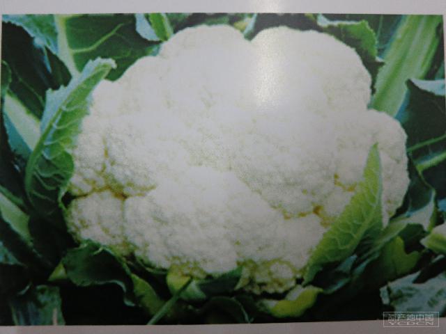1. 外在感官特征:白合花菜花球圆球形,花球大,质地致密,色泽洁白,品质细嫩,单球重1.5—2.0千克。叶片长椭圆形,叶缘波状,叶面微皱,蜡质较多。