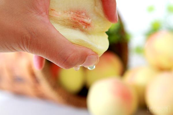 1.感官特色:南汇水蜜桃果形圆形,果顶圆平,缝合线浅;果皮绿白色,有红色细点,茸毛中等;皮厚韧,易剥离,粘核;肉质柔软、纤维少、汁多、味浓。